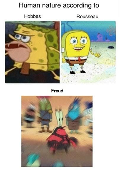 God I had a theories of human nature exam today and this image kept flashing in my head every time any one of these three were mentioned